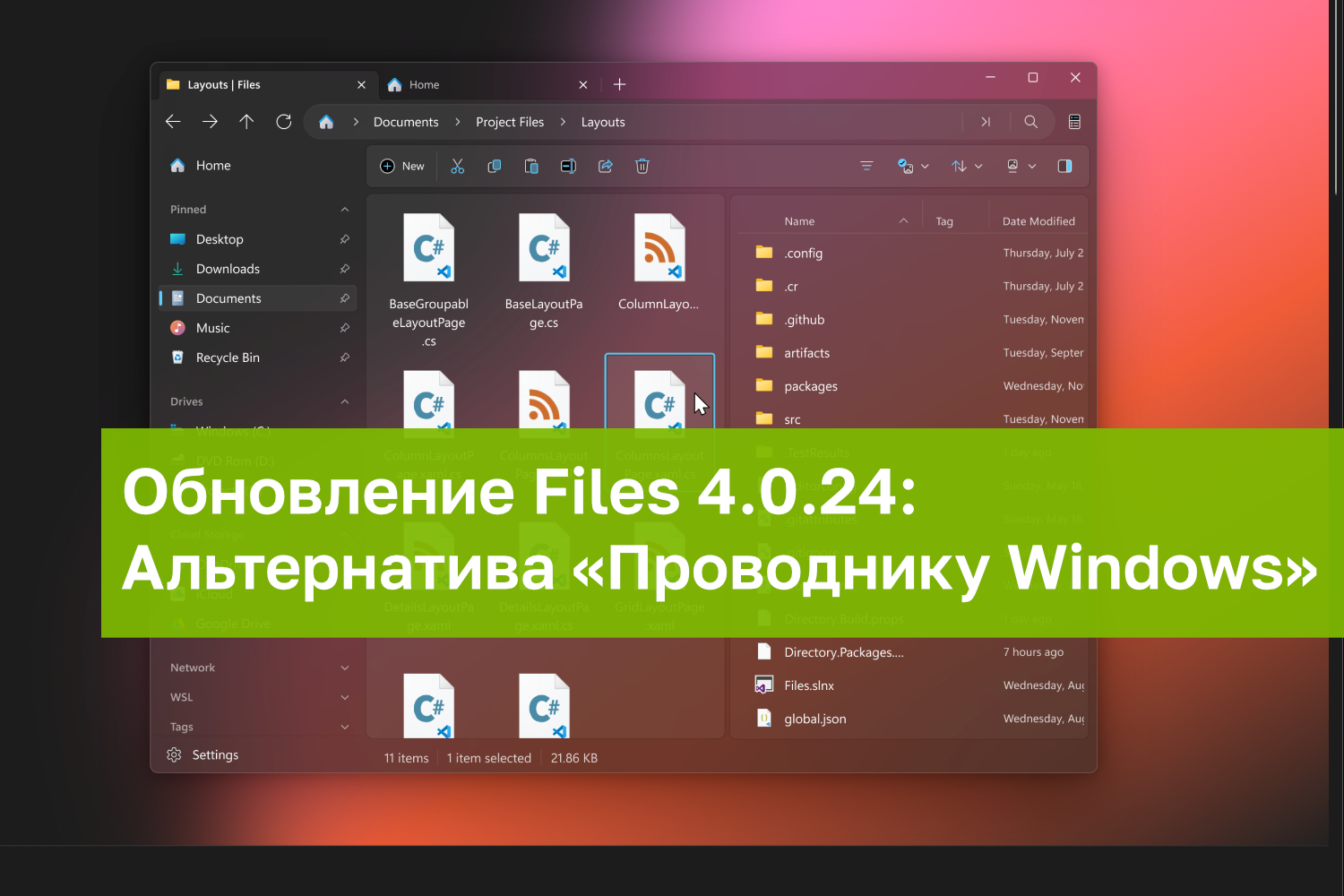 В обновлении Files 4.0.24 для Windows добавлена поддержка PowerToys Peek, ускорено создание файлов и папок, улучшены Omnibar и поиск по тегам, а также исправлены сбои в двухпанельном режиме и при работе с Git